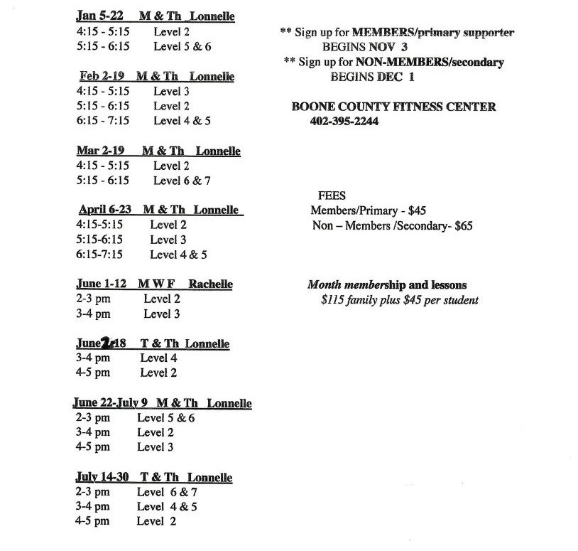 2026 Swimming Schedule: